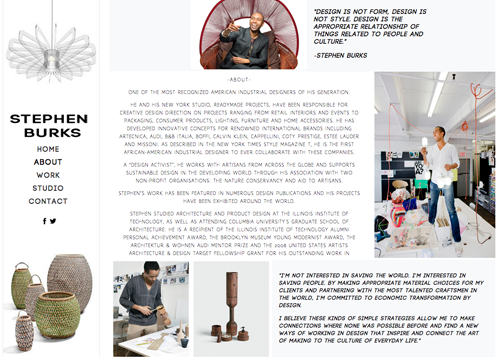 Stephen Burks is one of the most recognized American Industrial Designers. He is the first African-American designer to collaborate with renowned international brands and a ‘Design Activist’ supporting the developing world trough art.